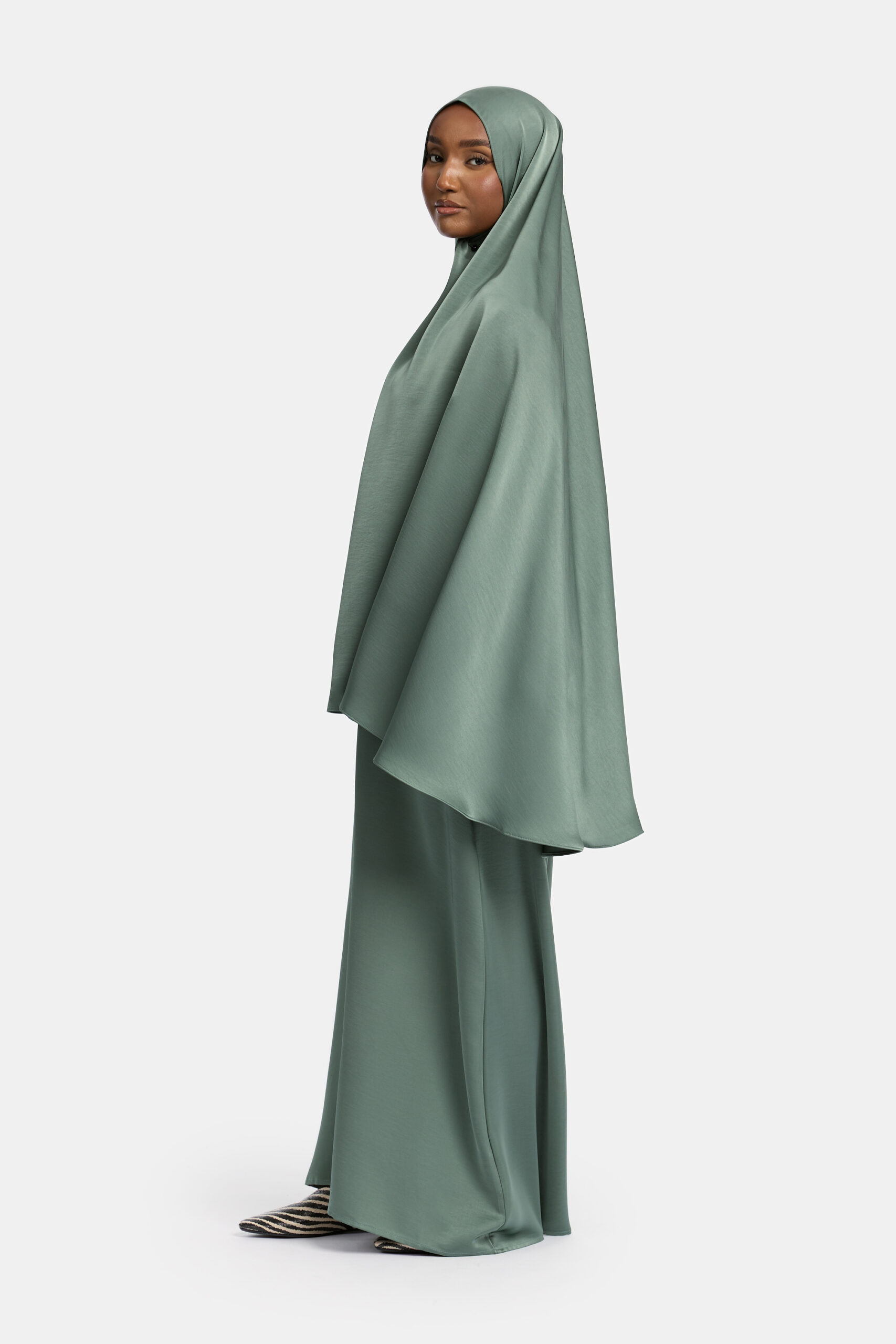 Gemaakt van een satin look stof van 100% polyester, is deze khimar uiterst lichtgewicht en bevat het een subtiele stretch, waardoor hij mooi aansluit rond het hoofd en prettig draagt.