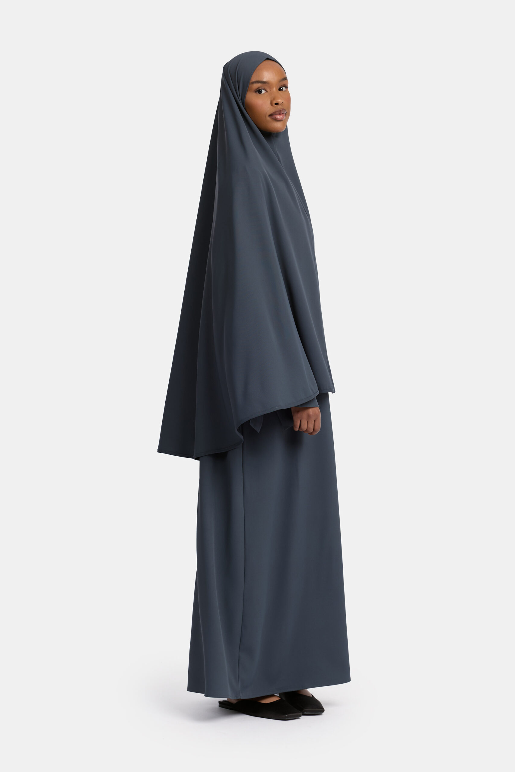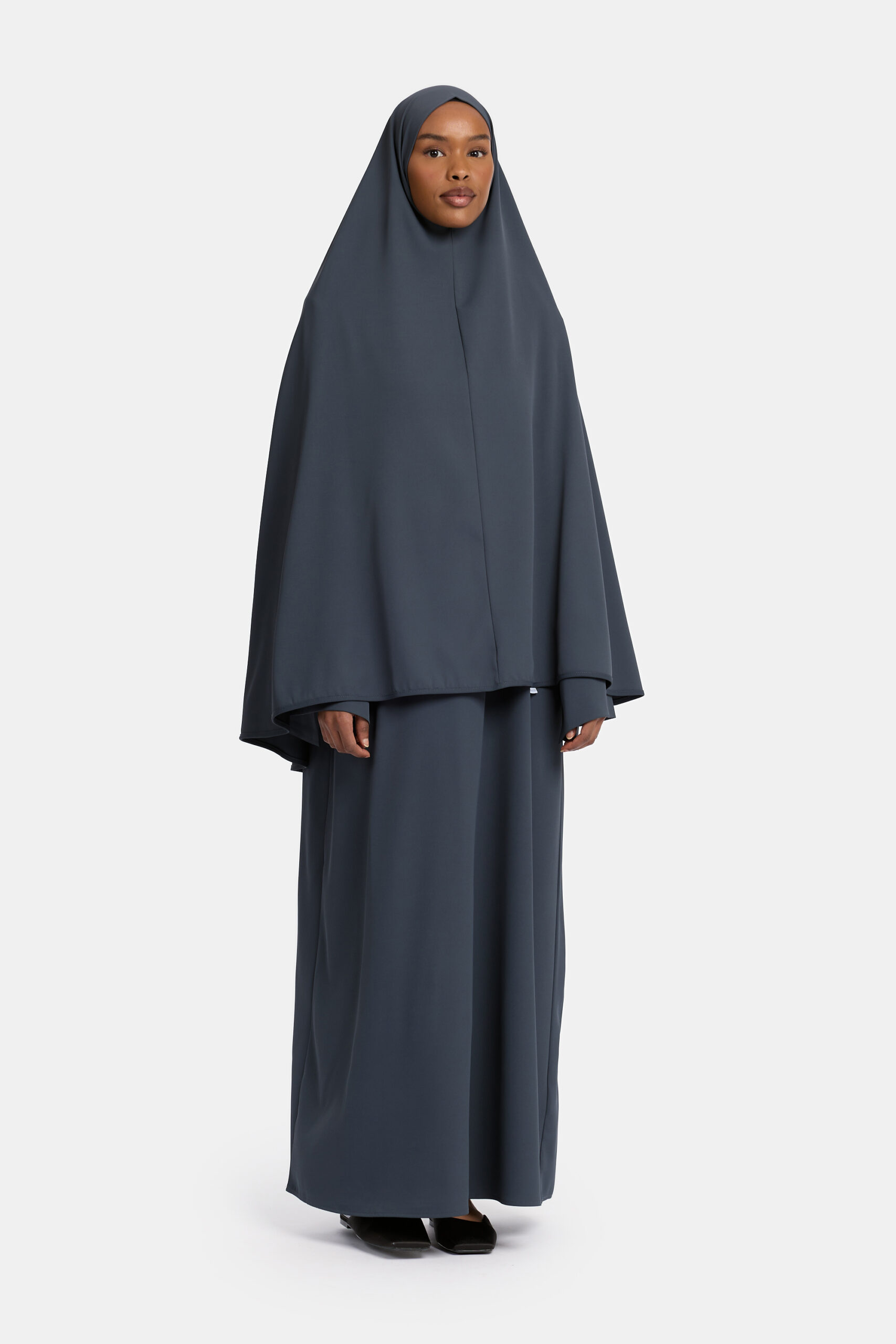 De Khimar combineert moeiteloos comfort, functionaliteit en stijl. Gemaakt van een mediumweight stof (96% polyester, 4% spandex), biedt deze khimar precies de juiste dikte voor koelere dagen – zonder zwaar aan te voelen.