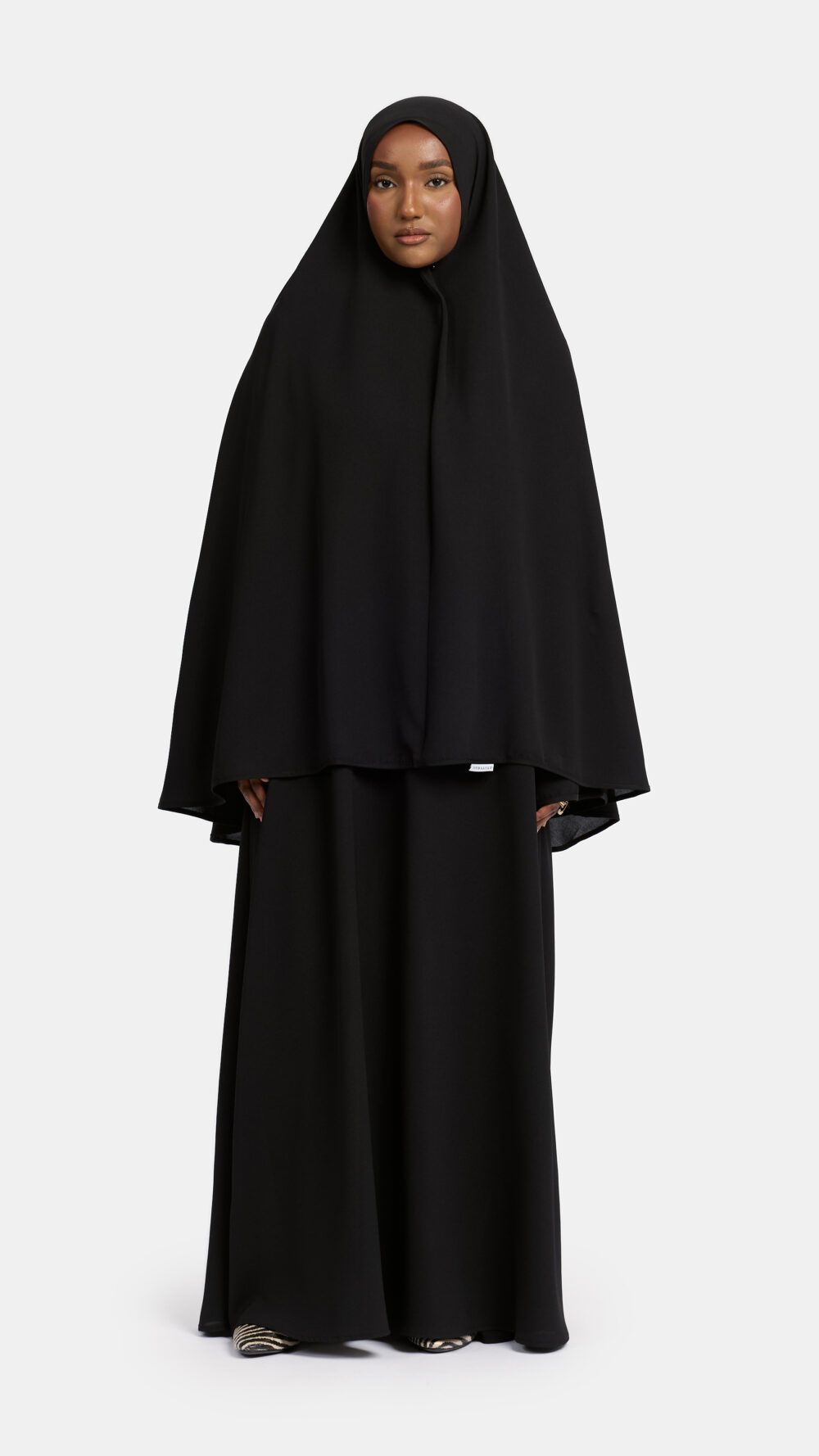 Dankzij het stretchmateriaal beweegt de khimar soepel met je lichaam, waardoor je altijd volledige bewegingsvrijheid hebt.