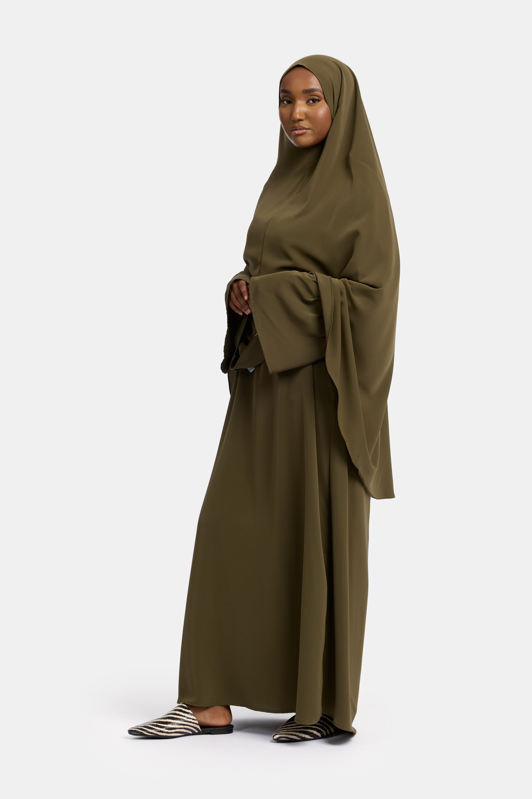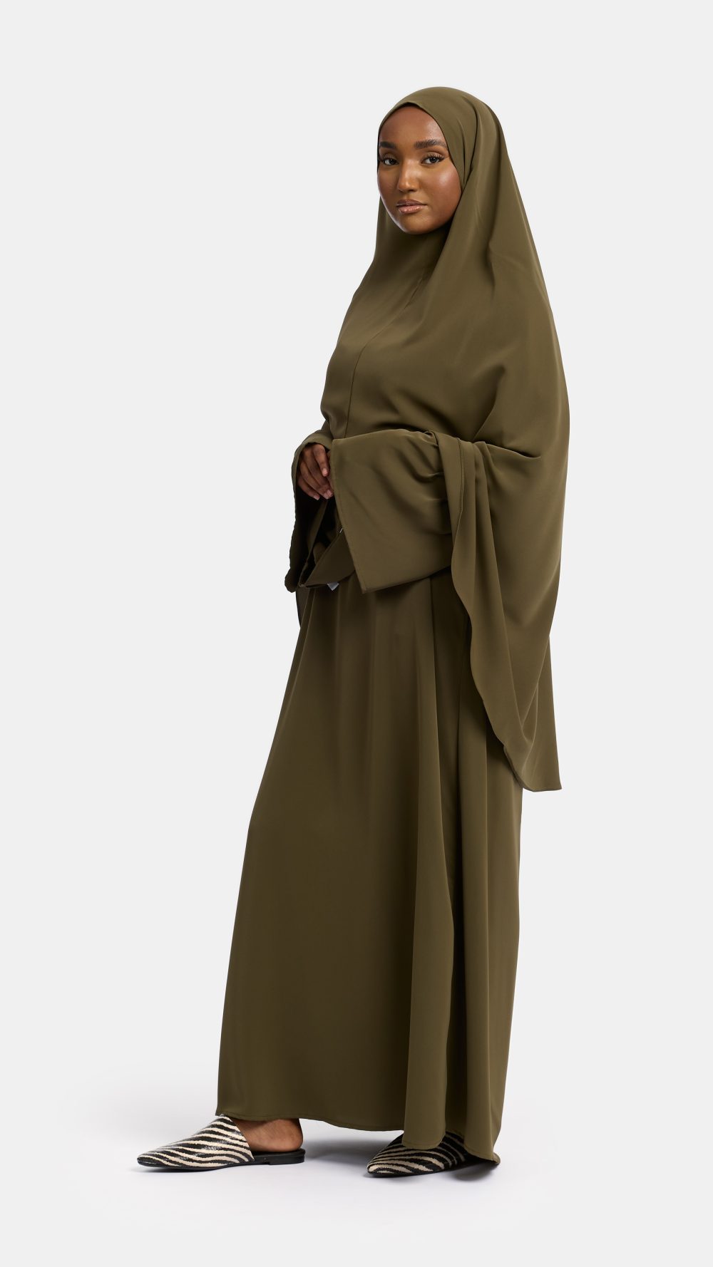 De Finesse Khimar biedt een perfecte balans tussen comfort en stijl. Gemaakt van ademende 100% polyester Nidha-stof, is deze khimar lichtgewicht en ideaal voor alledaags gebruik. De lengte van 113 cm en de gezichtsopening van 26 cm zorgen voor een elegante, volledig bedekkende pasvorm. Perfect voor dagelijks gebruik, biedt deze khimar zowel functionaliteit als verfijning zonder concessies te doen aan stijl.