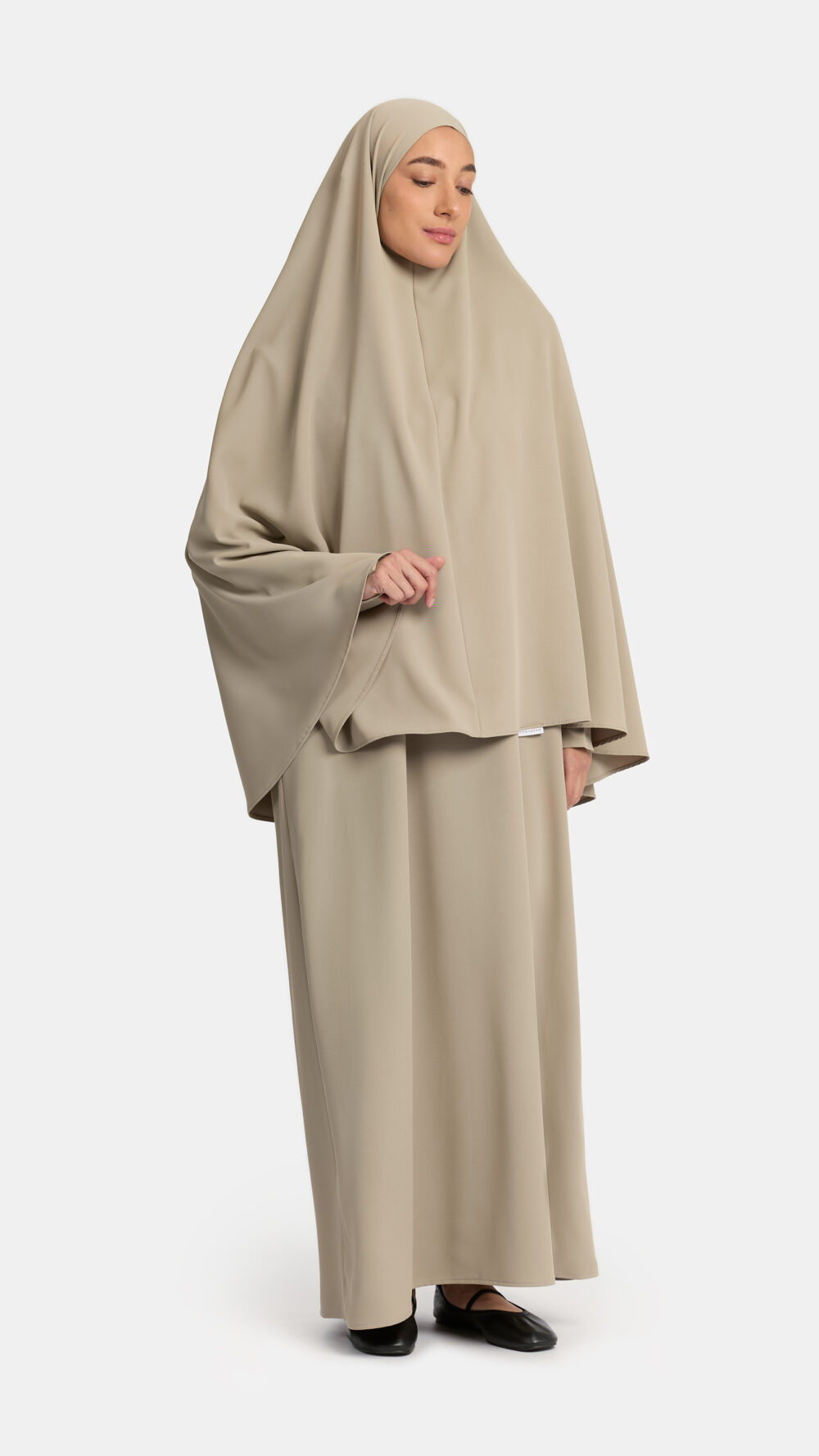 De Khimar combineert moeiteloos comfort, functionaliteit en stijl. Gemaakt van een mediumweight stof (95% polyester, 5% spandex), biedt deze khimar precies de juiste dikte voor koelere dagen zonder zwaar aan te voelen.
