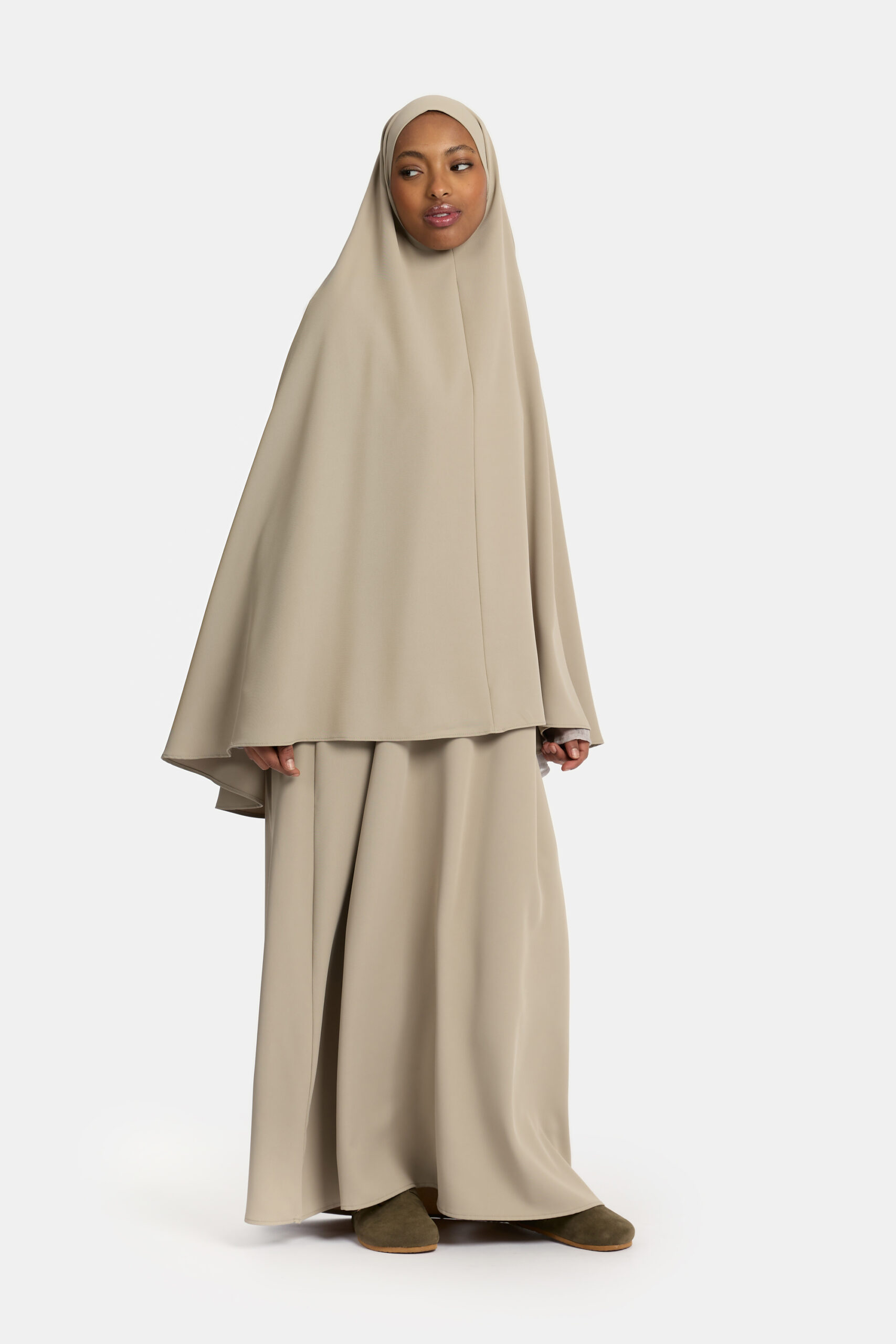Heup khimar Sage Taupe (Double sleeve)