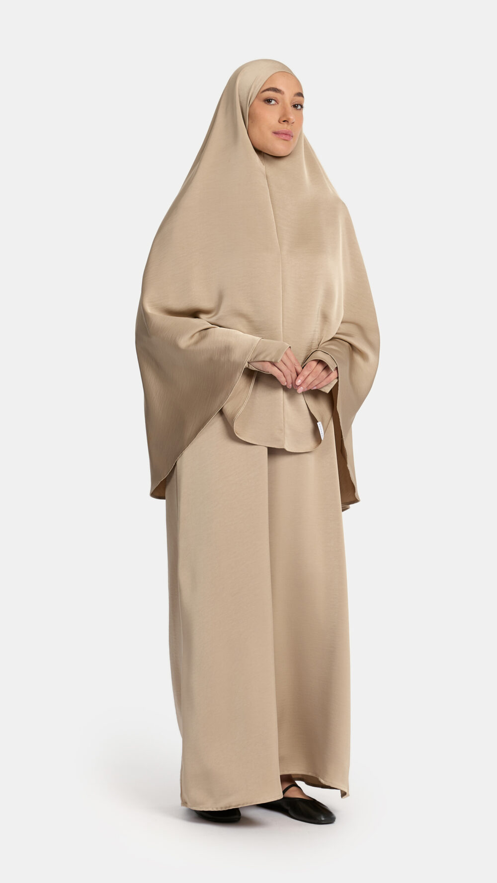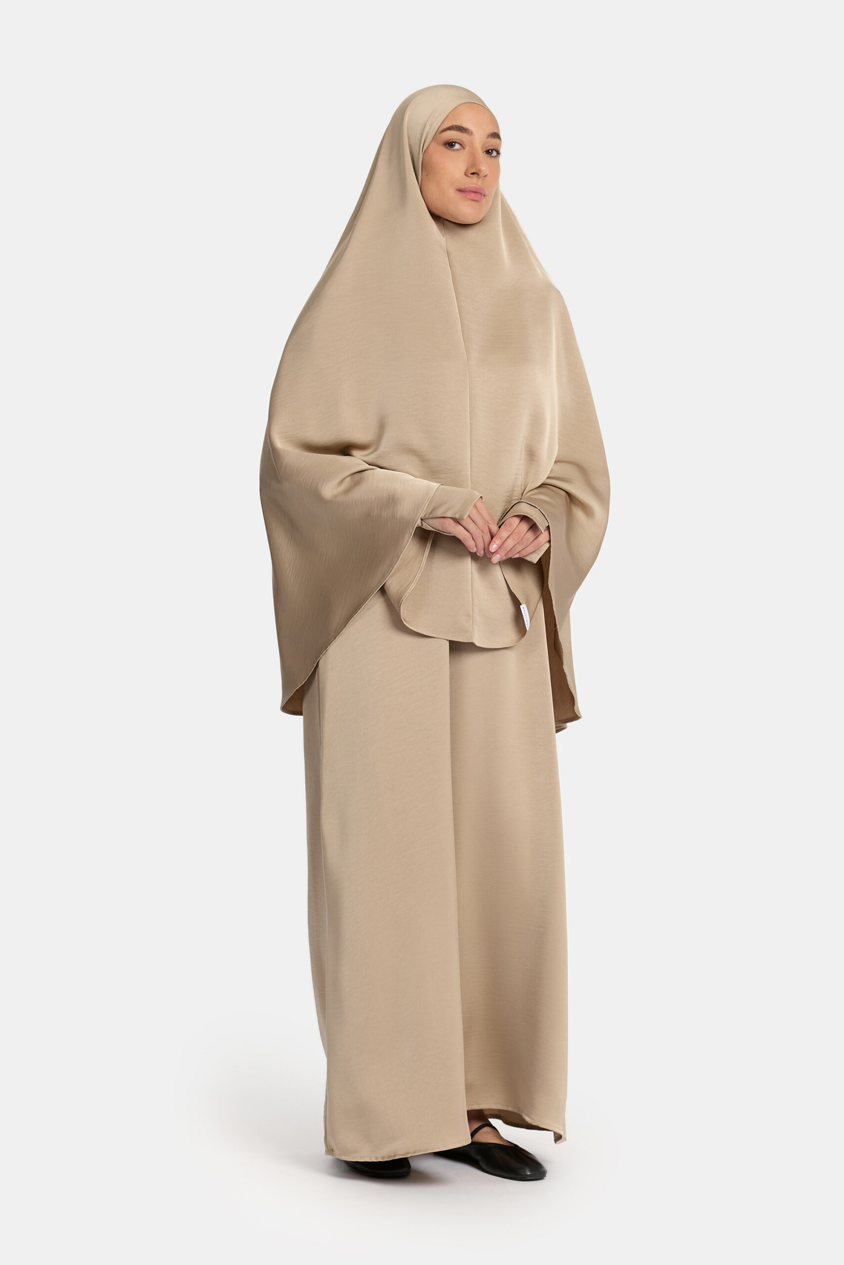 Heup khimar Satin Taupe (Button sleeve)