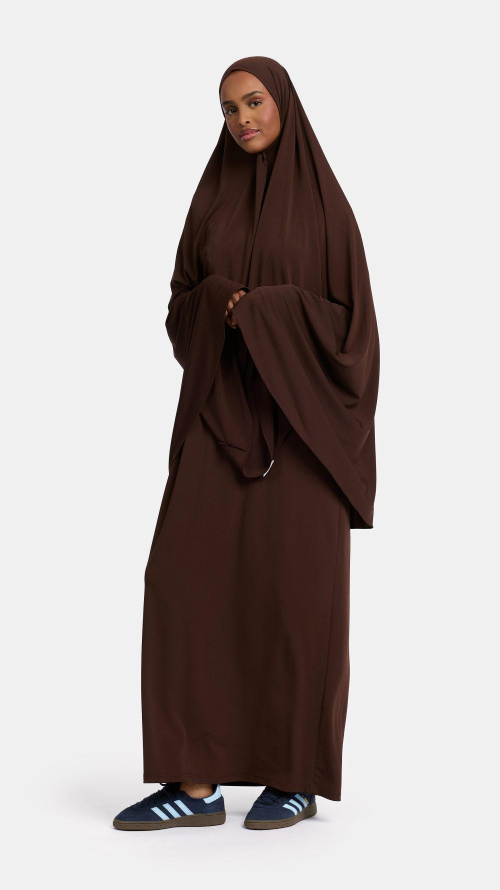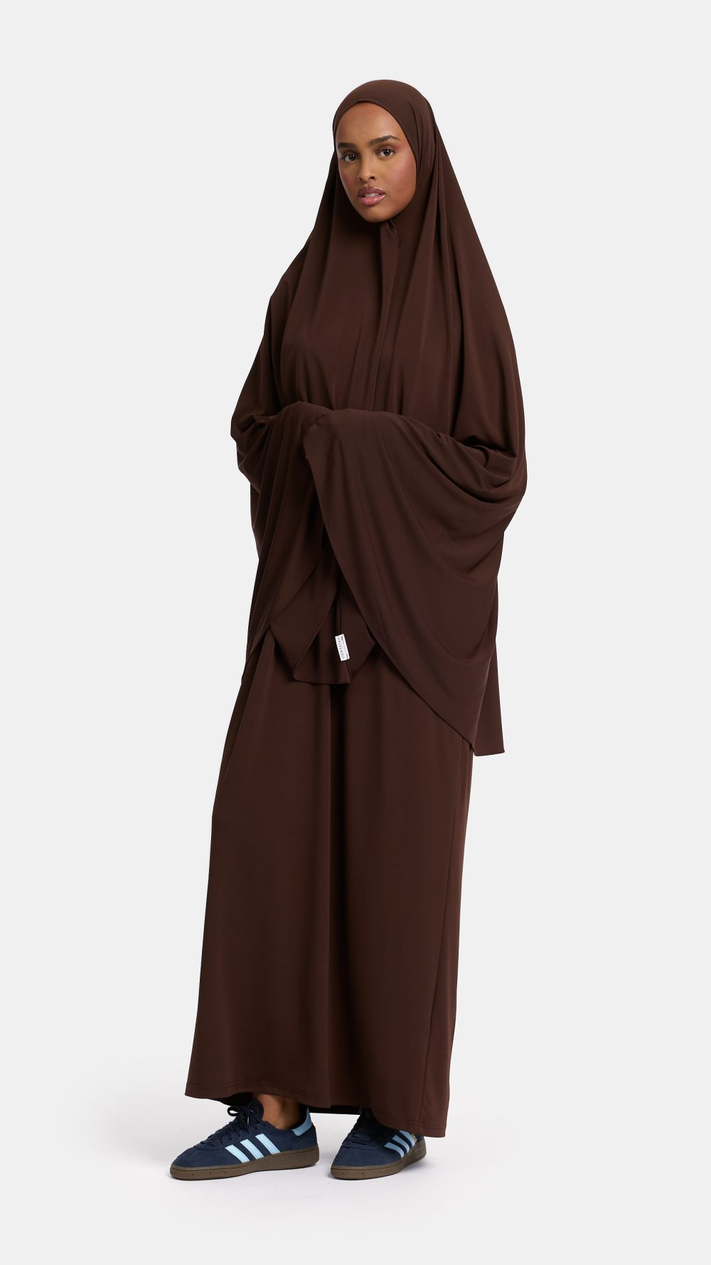 Deze lichtgewicht set van premium jersey is perfect voor elke dag. De abaya heeft een ronde hals en valt soepel, terwijl de khimar zorgt voor volledige bedekking. Comfortabel, stijlvol en ideaal als to-go outfit.