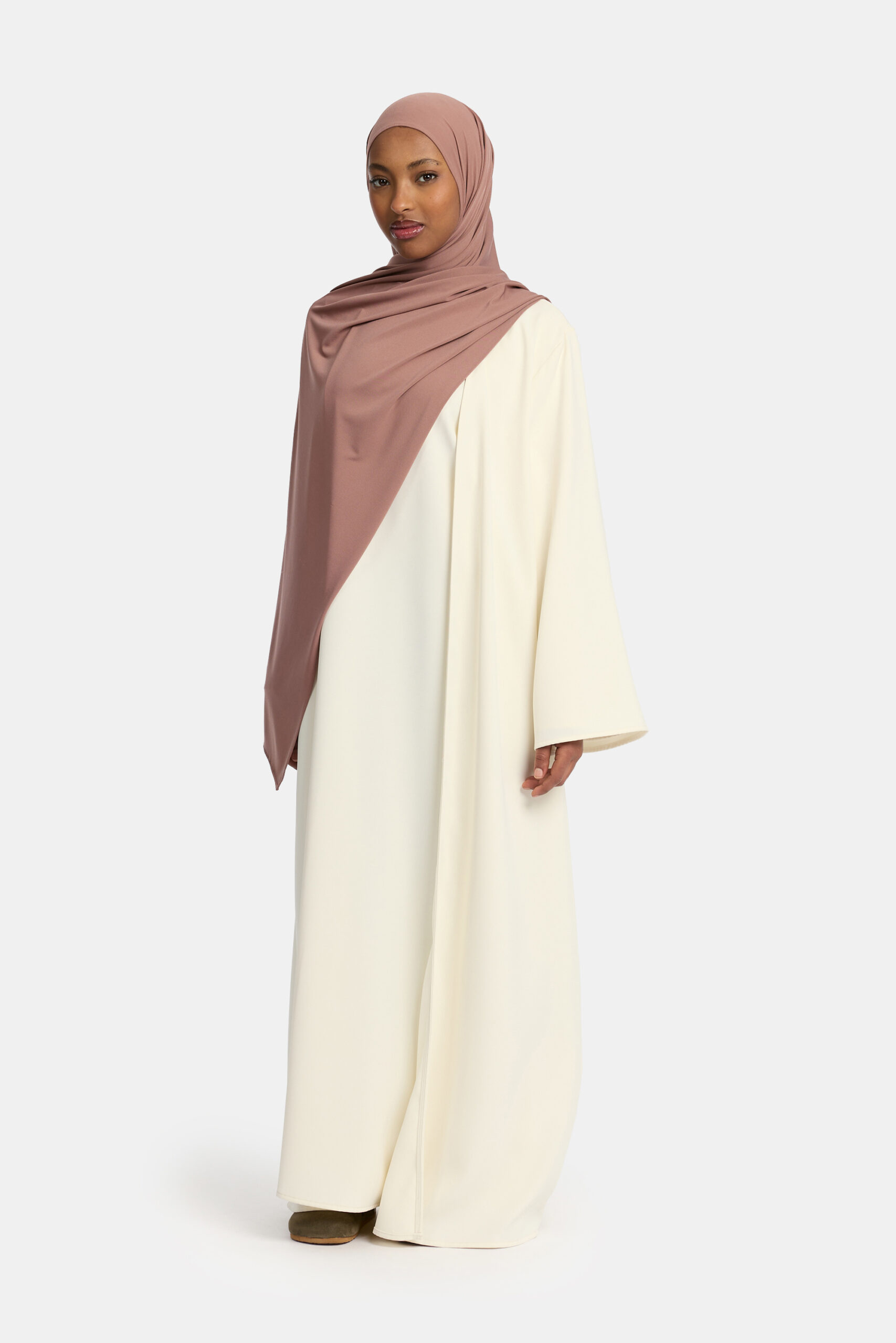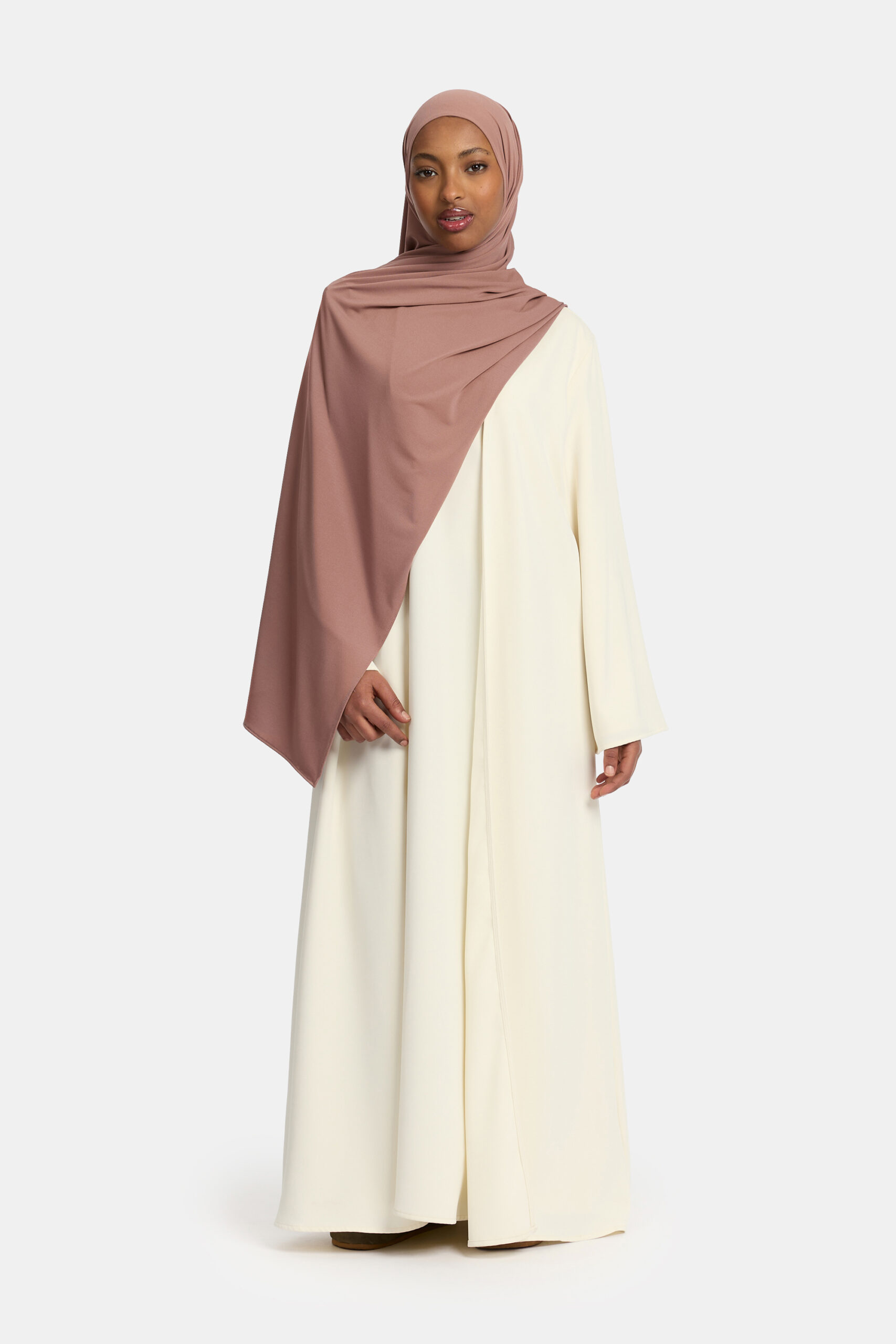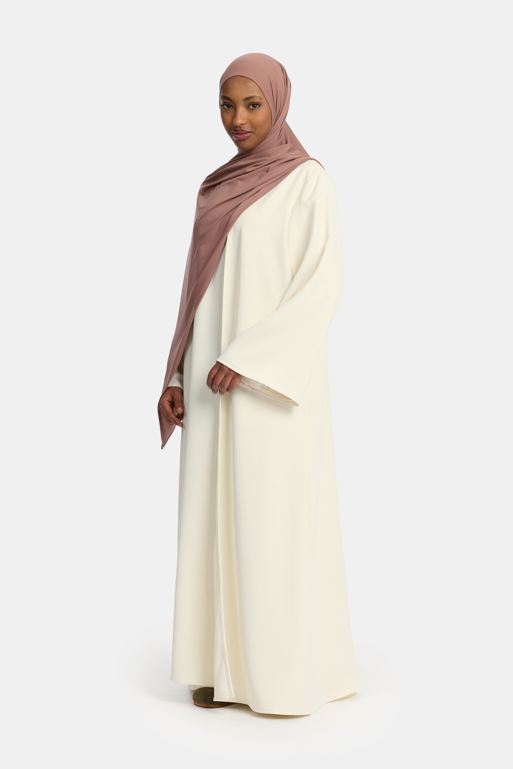 De abaya heeft een losse, flatterende pasvorm. Voor de beste fit adviseren wij je gebruikelijke maat te kiezen.