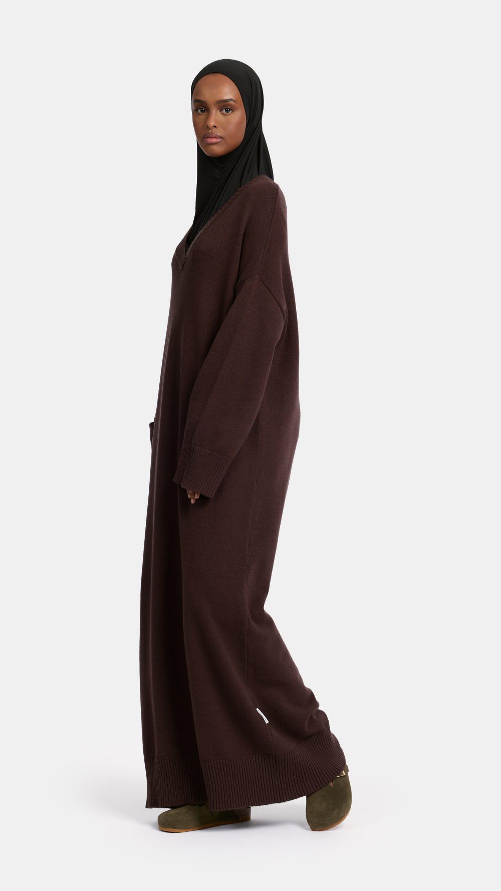 Met een diepe V-hals en een oversized fit straalt deze abaya een moderne én cozy uitstraling uit. Het verfijnde tricot en het tijdloze ontwerp maken het een veelzijdig stuk, perfect voor dagelijks gebruik.