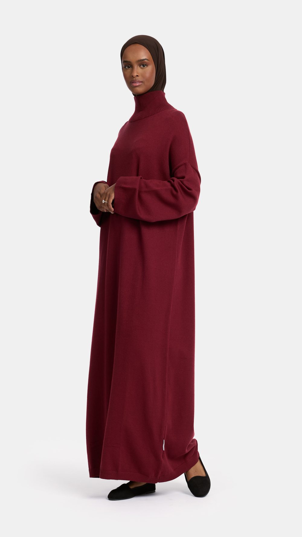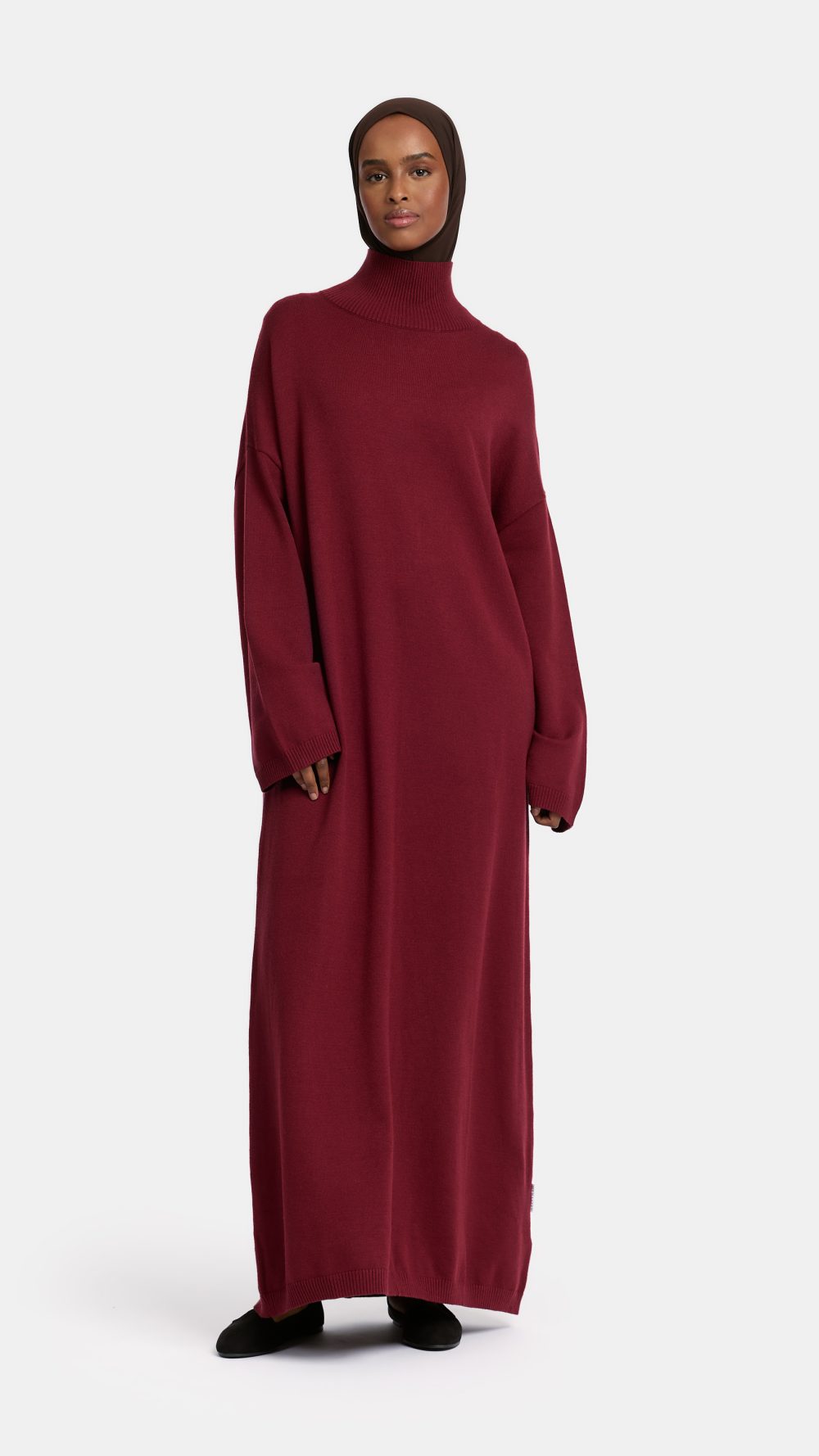 Met een elegante hoge kraag en een pasvorm die goed op maat valt, geeft deze abaya je een stijlvolle look met een subtiele cozy touch. Het verfijnde tricot en het tijdloze ontwerp maken het een veelzijdig stuk, perfect voor dagelijks gebruik.