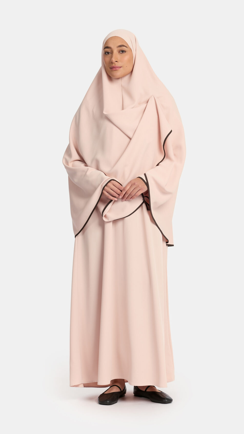 De bijbehorende khimar deelt dezelfde verfijnde kenmerken, waardoor het setje perfect te combineren is voor een complete look.