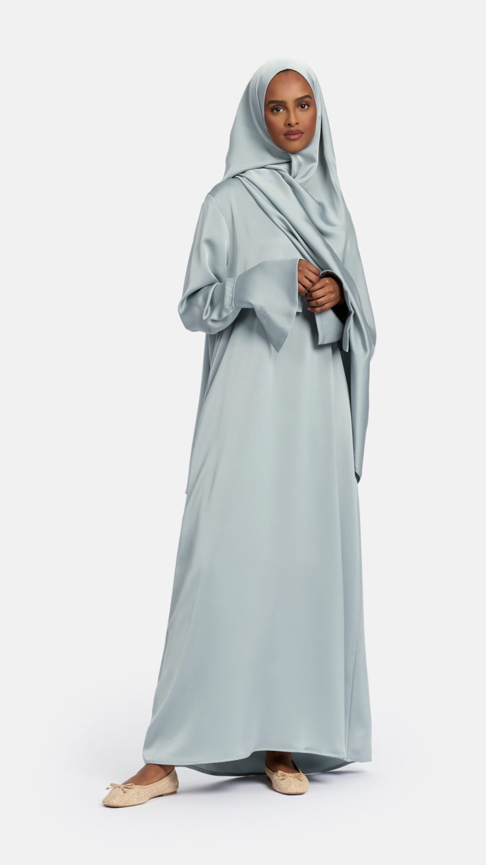 De Satin Simplicity Abaya heeft een V hals, flatterende pasvorm en is ontworpen om elegant te vallen, zonder te strak te zitten. Voor de beste fit adviseren wij om je gebruikelijke maat te kiezen. Houd er rekening mee dat de maat staat voor de omvang van het lichaam, terwijl de lengte apart wordt aangegeven – gemeten vanaf de schouder tot de onderkant van de jurk.