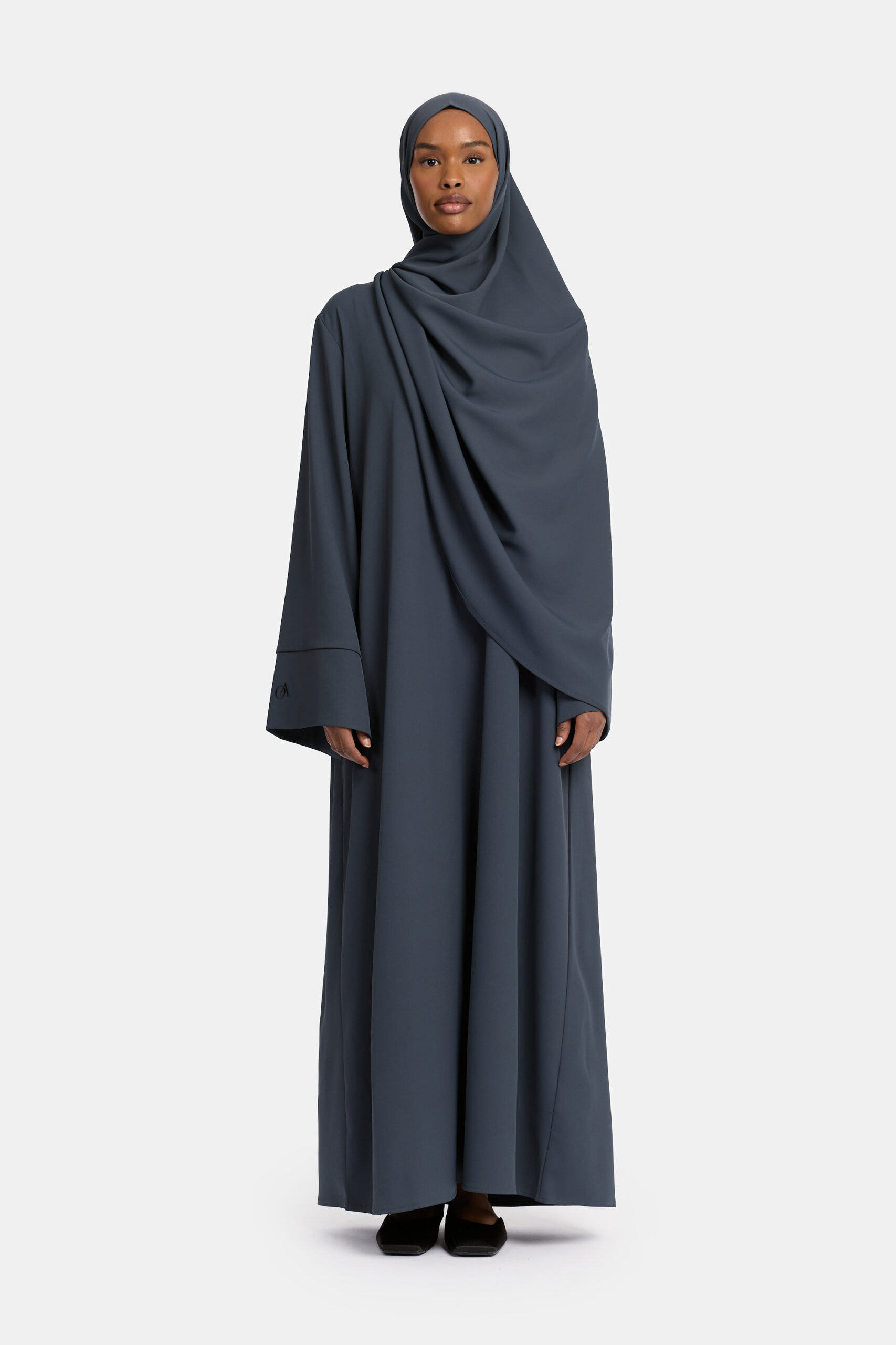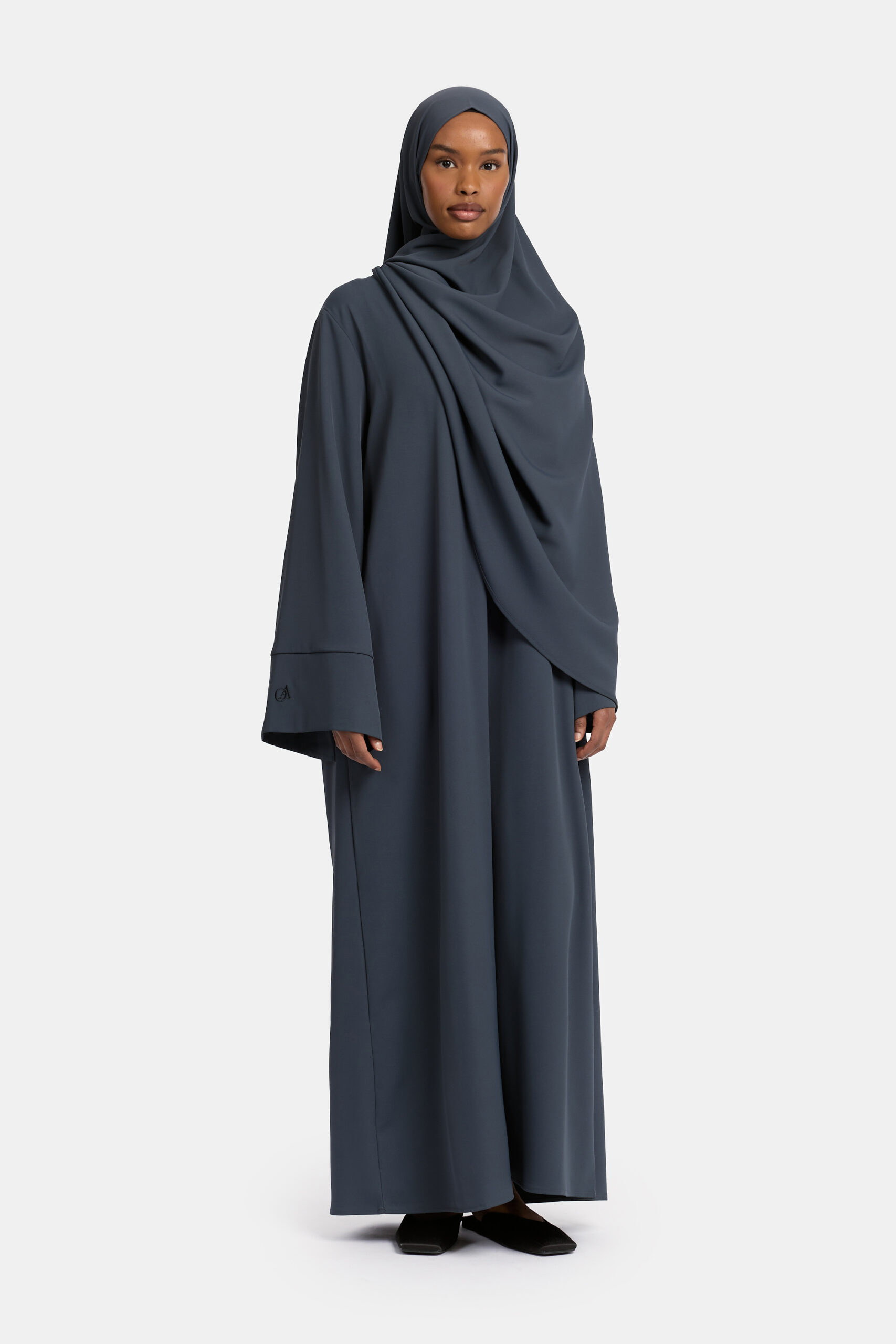 Dit tijdloze ontwerp wordt gekenmerkt door unieke mouwen met een elegante split, die de abaya een moderne en luxueuze uitstraling geven.