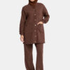 De Cotton Cozy Set bestaat uit een stijlvolle top en broek, gemaakt van een zachte en hoogwaardige mix van 85% katoen en 15% polyester.