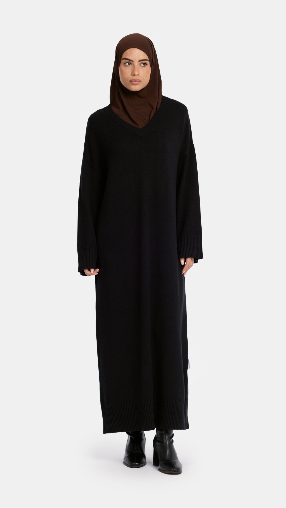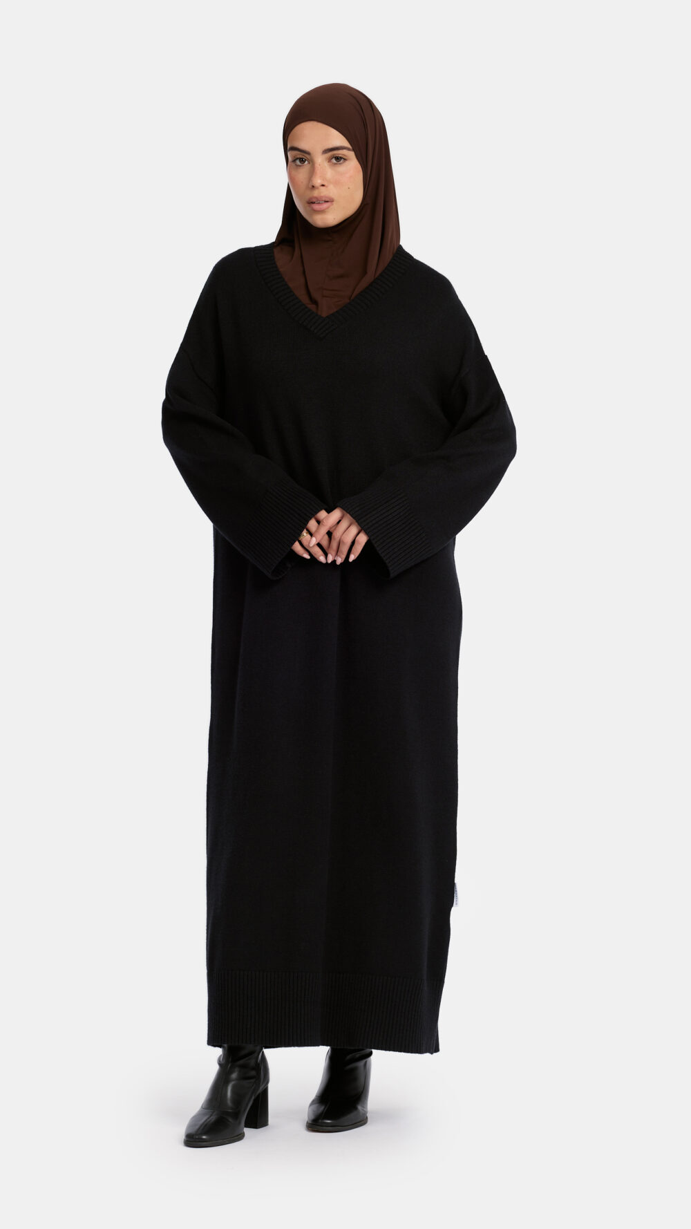 Met een diepe V-hals en een oversized fit straalt deze abaya een moderne én cozy uitstraling uit. Het verfijnde tricot en het tijdloze ontwerp maken het een veelzijdig stuk, perfect voor dagelijks gebruik.