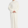 Met een elegante hoge kraag en een pasvorm die goed op maat valt, geeft deze abaya je een stijlvolle look met een subtiele cozy touch. Het verfijnde tricot en het tijdloze ontwerp maken het een veelzijdig stuk, perfect voor dagelijks gebruik.