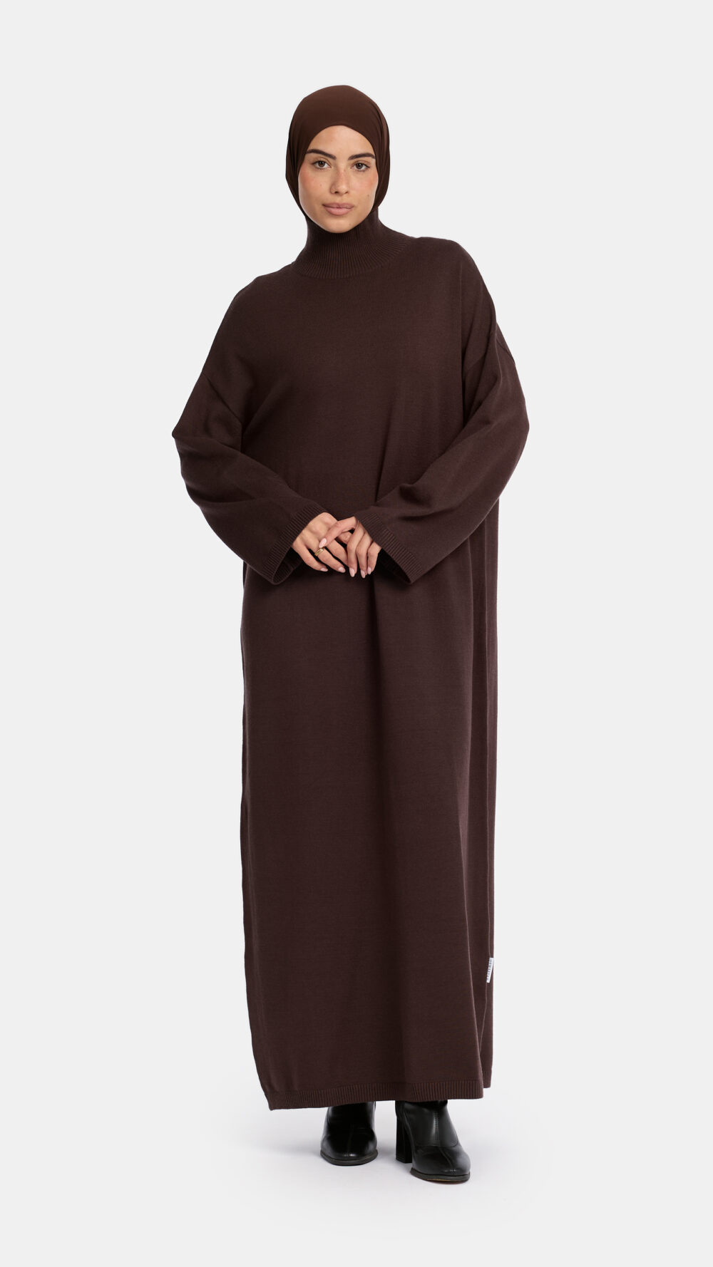 Tricot high neck abaya Espresso