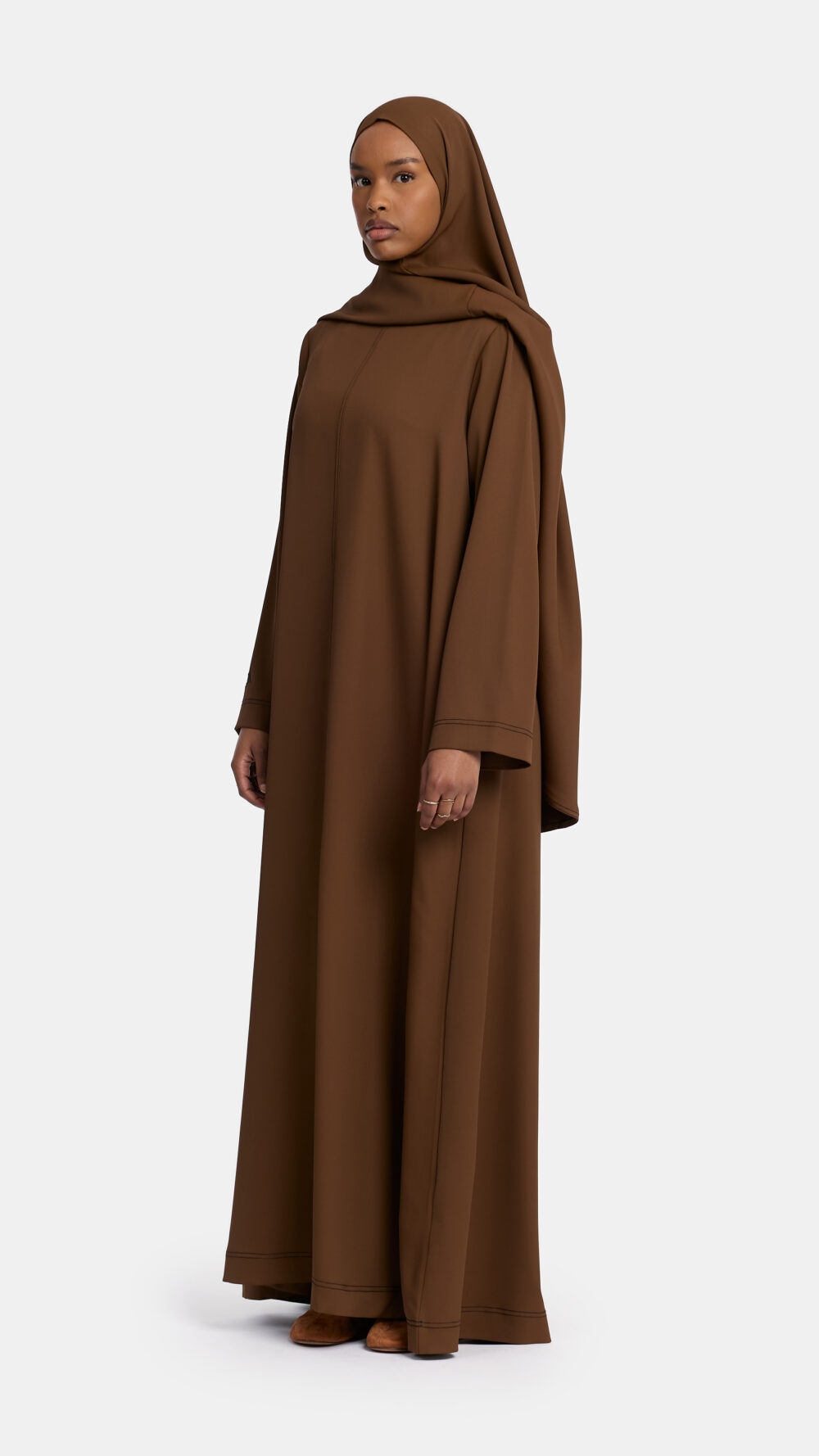 De Trim Abaya 96% polyester 4% spandex, is een verfijnd en uniek ontwerp, met opvallende trimdetails die de abaya een eigentijdse en moderne uitstraling geven. De zorgvuldig gekozen kleurtrims voegen een frisse twist toe en accentueren de lijnen, wat resulteert in een elegante, stijlvolle look die perfect is voor elke gelegenheid.