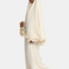 De gekrulde chiffon op de mouwen geeft de abaya een verfijnde en luxueuze uitstraling. In combinatie met de elegante V-hals en de wijde mouwen met gekruld chiffon-design ontstaat een stijlvolle en bescheiden look.